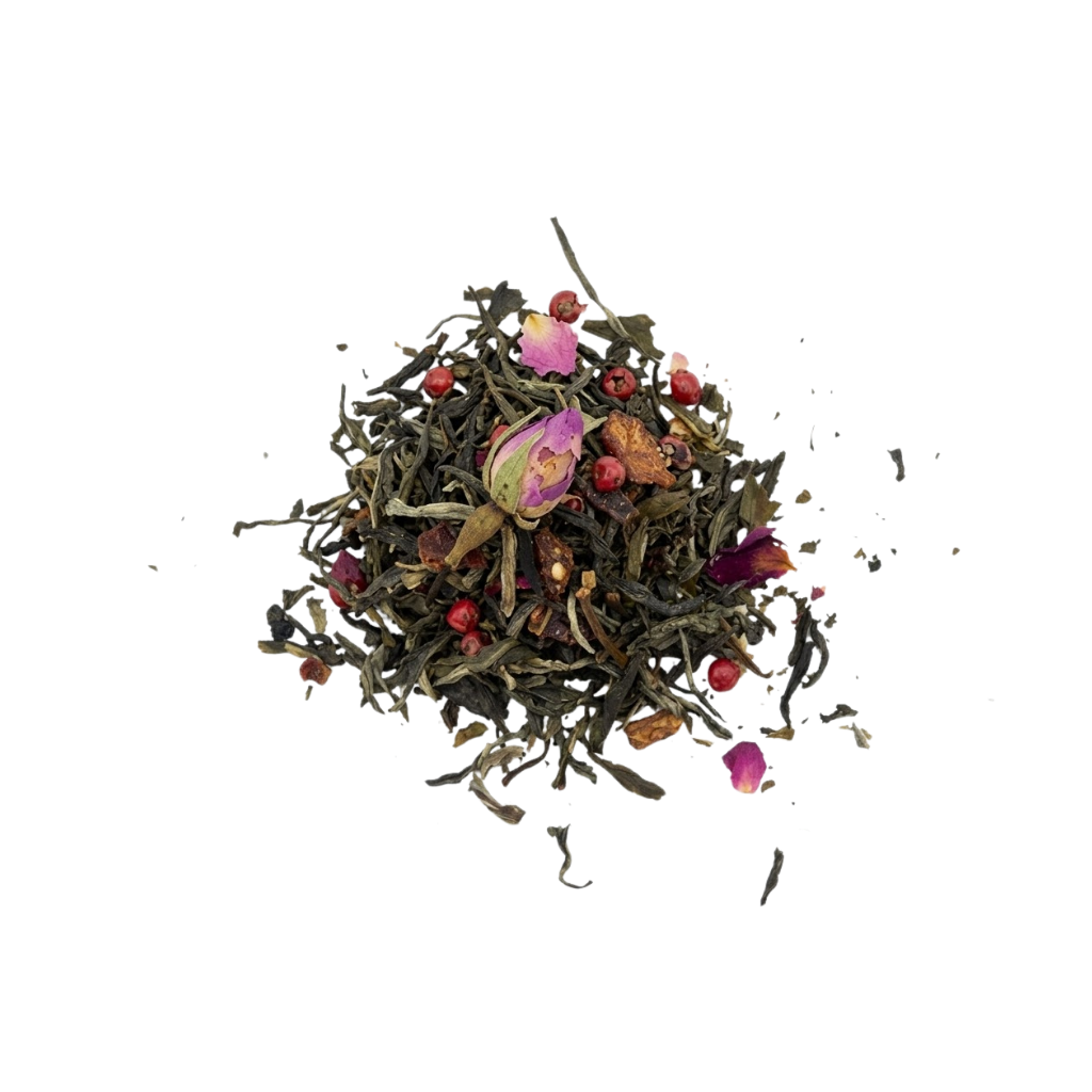 İçindekiler: Beyaz Çay, Üzüm Çekirdeği, Kuşburnu, Gül Yaprağı, Gül Goncası, Kırmızı Tane Biber, Nar Kabuğu, Vanilya Aroması, Kırmızı Meyveler Aroması